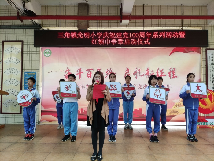 三角鎮光明小學慶祝中國共產黨建黨100周年暨紅領巾爭章活動啟動儀式發布時間:2021-03-11 10:07 信息來源:本網站 瀏覽次數:0