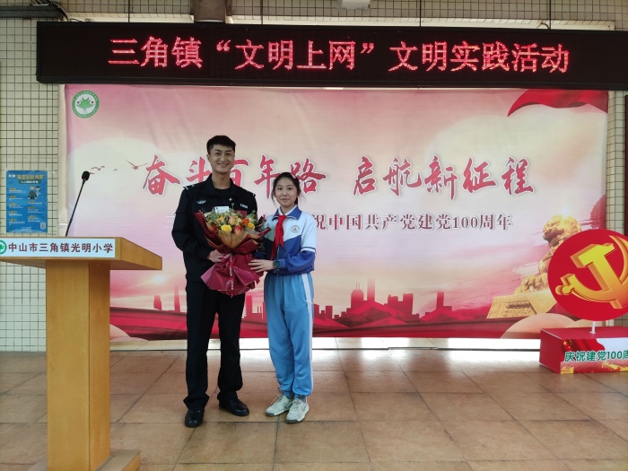 最后,還通過學生代表合唱、救人英雄講黨史、教師代表誦讀和師生大合唱等形式深情回顧黨的奮斗歷史,熱情謳歌黨的光輝業績,激發學生的歷史責任感,努力成長,成為民族復興的新時代好少年。