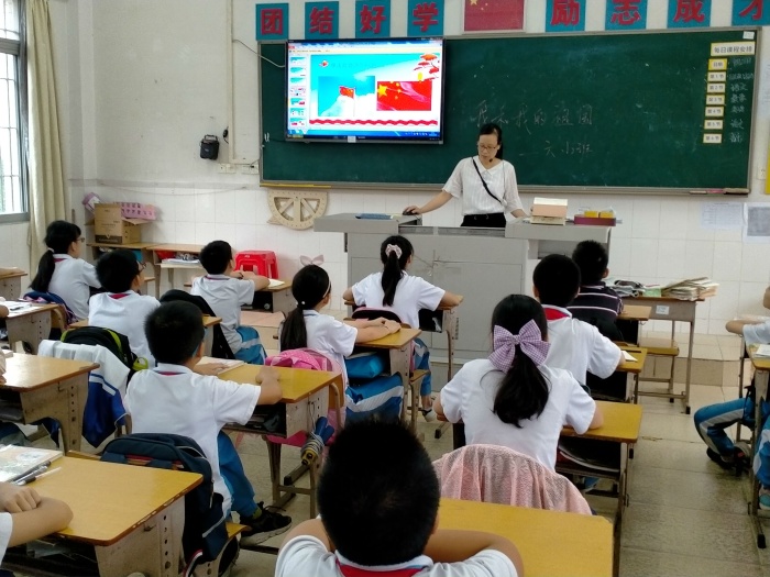 9月28日,光明小學(xué)開展“我和我的祖國”主題班會(huì)課。班會(huì)課上,同學(xué)們?cè)诟魳芬黄鸪稹段液臀业淖鎳罚羌で檠笠绲母杪暢龊⒆觽冃闹袑?duì)祖國的熱愛,唱響了孩子們對(duì)祖國深深地祝福。有的同學(xué)代表講述了愛國主義故事,給大家推薦愛國主義書籍,并結(jié)合愛國典型人物和事例講述自己的所學(xué)所感。他們?cè)跀⑹鰧?duì)祖國的真情實(shí)感時(shí),下定決心要為祖國的明天更加繁榮昌盛而努力學(xué)習(xí)。