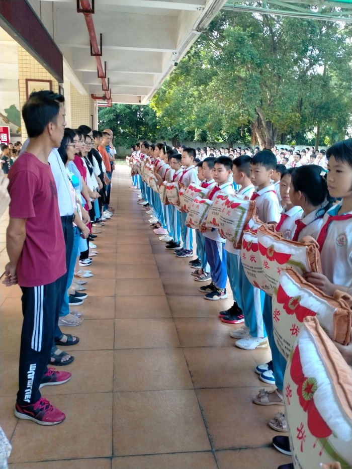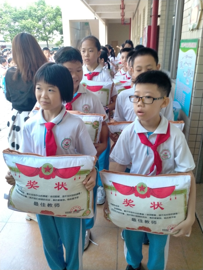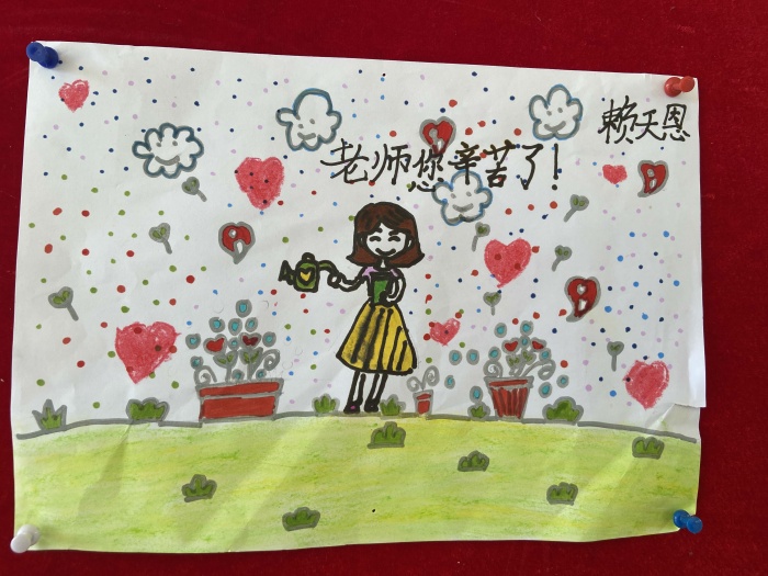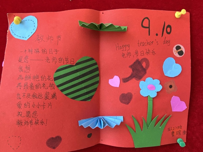 慶祝活動(dòng)結(jié)束后,少先隊(duì)大隊(duì)部向全體隊(duì)員發(fā)出“童心有愛(ài),不忘師恩”慶祝教師節(jié)活動(dòng)倡議。倡議全體隊(duì)員貫徹落實(shí)以節(jié)約為原則和用實(shí)際行動(dòng)報(bào)答恩師,表達(dá)對(duì)老師們節(jié)日的祝賀。大隊(duì)部分別組織了低、中、高年級(jí)不同的活動(dòng):一、二年級(jí)組織“童聲表恩情”活動(dòng),通過(guò)錄制小視頻的方式將節(jié)日祝福、感恩的話(huà)語(yǔ)送給教師;三、四年級(jí)組織“小手畫(huà)師容”活動(dòng),畫(huà)出你眼中老師的模樣;五、六年級(jí)組織“小小賀卡表心意”活動(dòng),通過(guò)親自制作賀卡,表達(dá)對(duì)老師的感謝,其中部分優(yōu)秀作品展示在學(xué)校的大堂里供師生們欣賞。