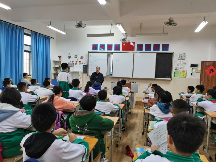 春風和煦,陽光明媚,在學校教導(dǎo)處的工作安排下,數(shù)學科組的“推廣聽課”活動正有序開展。今天學校行政班子和部分老師走進了五(1)班崔奉球老師的課堂。