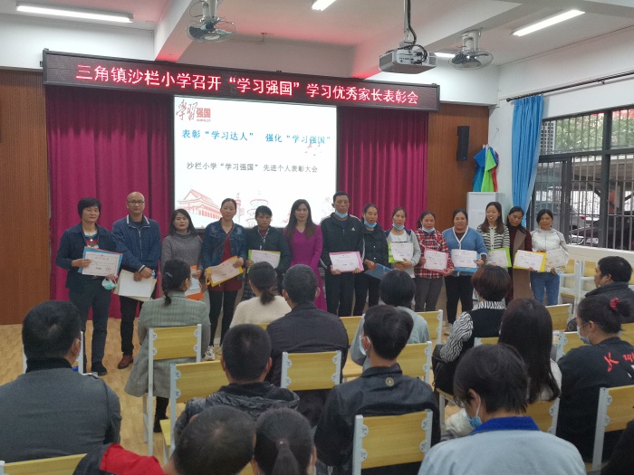 本學(xué)期,為了響應(yīng)黨中央的號(hào)召,沙欄小學(xué)“學(xué)習(xí)強(qiáng)國(guó)”學(xué)習(xí)活動(dòng)開(kāi)展如火如荼,不僅全體教師天天學(xué)習(xí),全體家長(zhǎng)也加入了這個(gè)“學(xué)習(xí)強(qiáng)國(guó)”學(xué)習(xí)的行列。為了鞏固前階段的學(xué)習(xí)成果,也為了進(jìn)一步推廣“學(xué)習(xí)強(qiáng)國(guó)”學(xué)習(xí)活動(dòng),擴(kuò)大其在全社會(huì)的影響,12月10日下午,沙欄小學(xué)繼續(xù)召開(kāi)“學(xué)習(xí)強(qiáng)國(guó)”學(xué)習(xí)先進(jìn)家長(zhǎng)表彰大會(huì),值此機(jī)會(huì),表彰了從9月1日到12月9日在學(xué)習(xí)強(qiáng)國(guó)活動(dòng)中表現(xiàn)突出的五年級(jí)家長(zhǎng),五年級(jí)全體教師和家長(zhǎng)參加了此次大會(huì)。