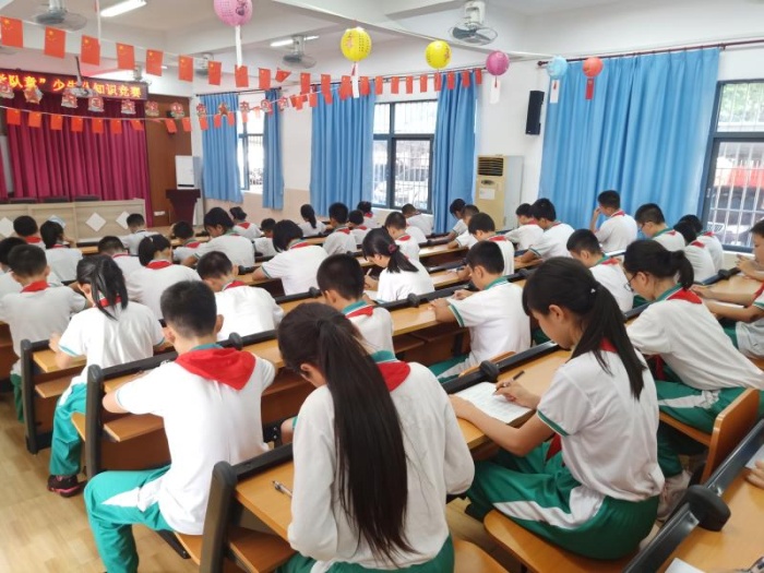 競賽前,大隊部要求各中隊組織全體隊員認真學習隊章和隊史,了解掌握有關少先隊知識。各中隊選出5名代表參加大隊部組織的全校競賽。競賽以筆試的形式進行,內容涵蓋了入隊宣誓、隊旗圖案、少先隊隊史以及紅領巾意義等。隊員們準備充分,測試卷剛剛發下,隊員們一個個便奮筆疾書,認真作答,把自己身為少先隊員的光榮和驕傲書寫在這份答卷中。由于各中隊做了充分準備,隊員們較好地掌握了隊章和隊史知識。