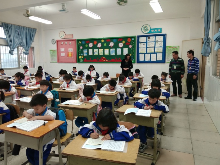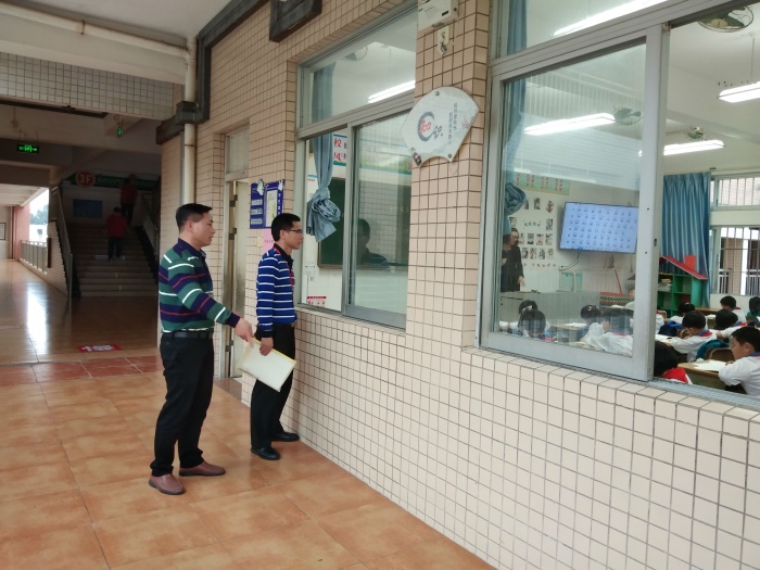 梁炳華校長在三角小學陳見洪校長的陪同下,巡視了校園,聽取了陳校長針對學校開學工作所做的匯報,并對學校的整體情況、疫情防控工作、校園安全工作、學校教育教學常規工作等情況進行了全方位了解。針對教學質量提升的細節問題,梁校長還與教導處陳寶瑩主任進行了詳細交流。隨后,梁校長深入班級,對教室環境、班級文化布置、學生上課狀態等進行了檢查。