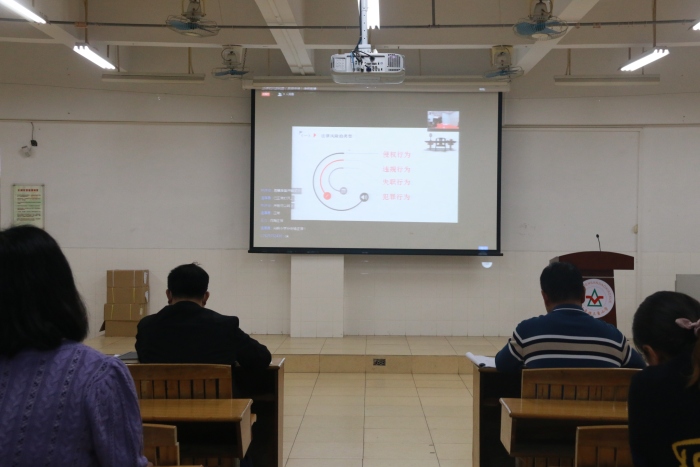 講座中,沈律師從《中華人民共和國教師法》和《未成年人保護法》入手,通過“教師工作中的法律風險”和“以案說法”兩個環節解析相關案件,明確教師的權利保護和行為規范。首先,沈律師通過生動的語言和典型案例,明確教師的教育義務和法律義務,并建議教師們利用好空余時間,通讀諸如《未成年人保護法》及《中華人民共和國教師法》等與教師職業相關的法律,豐富自己的法律法規知識。其后,沈律師向大家提出了“侵權行為”“違規行為”“失職行為”“犯罪行為”的明確界限。他告誡教師們,廣大教育工作者應當按照法律法規履行自身的職責,按要求做好相關教育工作,嚴禁違反職業道德。