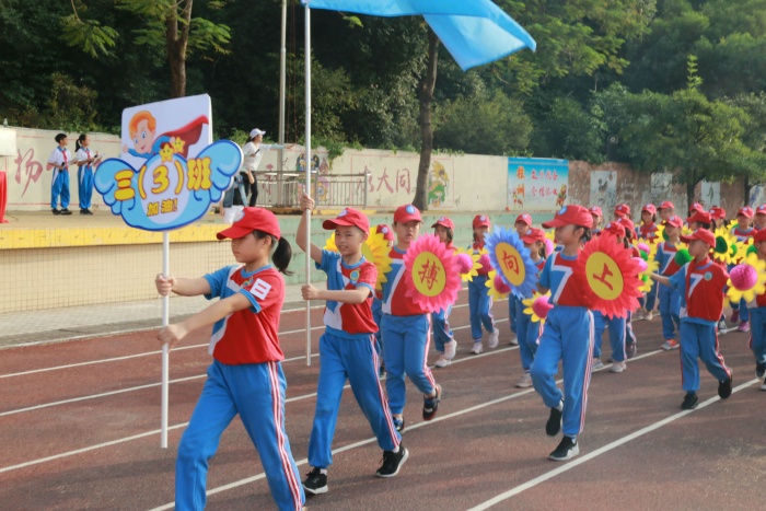 8時許,所有嘉賓領(lǐng)導(dǎo)入座后,田徑運動會開幕式在激昂奮進的《運動員進行曲》中正式開始。首先出場的是三角小學(xué)麒麟舞代表隊,他們傳承歷史,舞動青春,帶著活潑有力,青春自由的身姿經(jīng)過了舞臺。隨后是各班級代表隊入場。高年級的同學(xué)邁著整齊劃一,堅定有力的步伐走來,他們自信自強;中年級的同學(xué)來到舞臺后整齊響亮的口號以及精心策劃的動作造型引來了觀眾的陣陣掌聲;低年級的同學(xué)們活潑可愛,小步入場,帶來了無限的青春與活力。