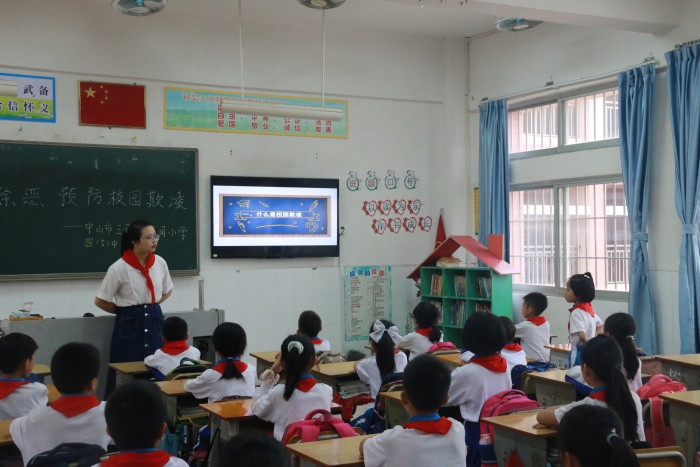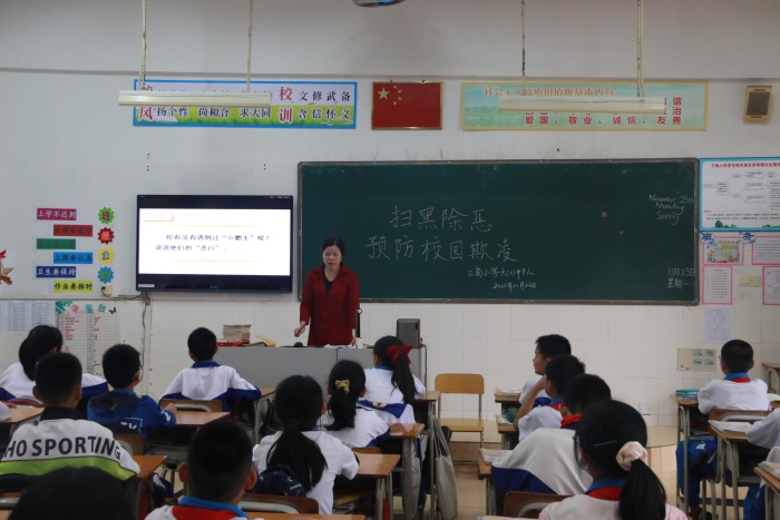 周瓊珠老師深入課堂,先是聽取了四(5)班葉穎老師的《掃黑除惡 預防校園欺凌》主題班會課,隨后展開了熱烈的評課、交流、指導活動。周老師充分肯定了葉穎老師認真負責的教學態度、扎實穩重的教學基本功以及師生和諧共進的親和力。同時,周老師認為要上好一節主題班會課,教師應準確把握知識的重難點,體現有效教學;應注重讓學生在活動中學,在課堂上“動起來”;應創設有效情境,引導學生主動參與課堂,體驗思考;應關注全體學生,給予每個人充分的自我展示機會。周老師指出:“形式只是載體,主題班會課最終目的是提高學生明辨是非的能力,讓他們懂得什么是對的,什么是錯的。”