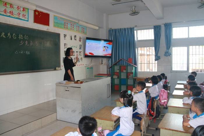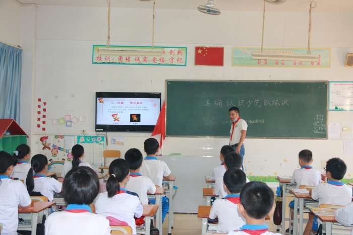 面對一、二年級的學生,各中隊輔導員圍繞著如何“成為一名合格的少先隊員”的問題展開隊會。當中隊輔導員們講到少先隊員的“六知”、“六會”、“一做”時,同學們都聚精會神地聽著。從學習中,他們知道了少先隊隊名、少先隊創立者和領導者、少先隊隊旗的含義、少先隊的標志、少先隊隊徽的含義、少先隊的作風,努力學會佩戴紅領巾、敬隊禮、唱隊歌、呼號、背入隊誓詞、寫入隊申請,入隊前的要求是為人民做一件好事。三至六年級的同學們已是一名光榮的少先隊員。各中隊輔導員教導少先隊員們正確認識少先隊標志,倡導每位少先隊員刻苦學習知識,堅定理想信念,磨練堅強意志,鍛煉強健體魄,為實現中華民族偉大復興的中國夢時刻準備著。