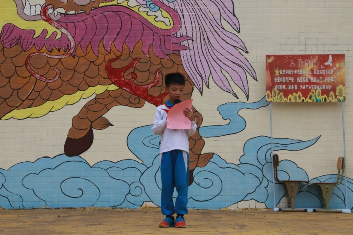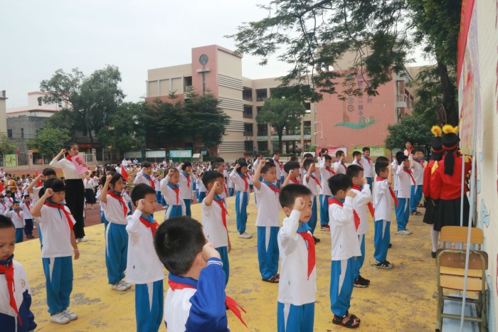 最后,廖樂詩老師帶領全體隊員呼號:“準備著,為共產主義事業而奮斗!”隊員們齊聲回答:“時刻準備著!”入隊儀式在喜悅熱烈的氣氛中圓滿結束。