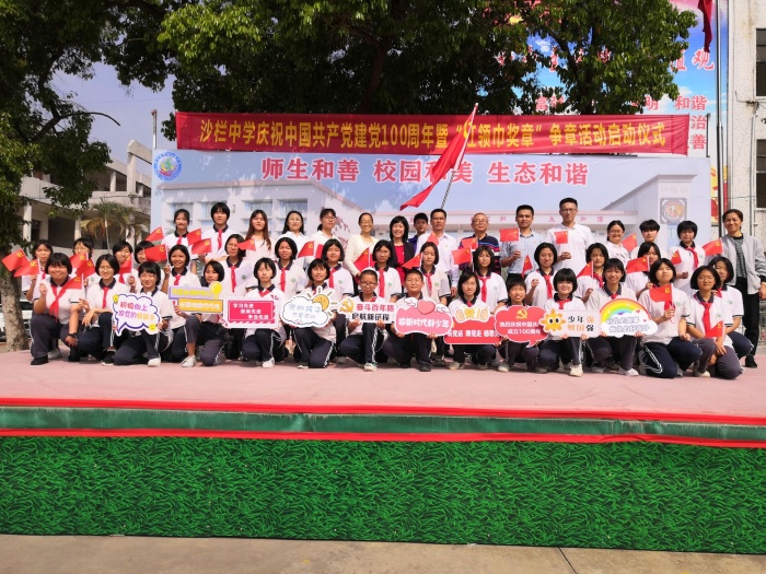 為慶祝中國共產黨建黨100周年,同時根據《中共中央關于全面加強新時代少先隊工作的意見》和《中山市“紅領巾獎章”實施細則》等文件精神,3月15日上午,三角鎮沙欄中學開展了慶祝中國共產黨建黨100周年暨“紅領巾獎章”爭章活動啟動儀式。