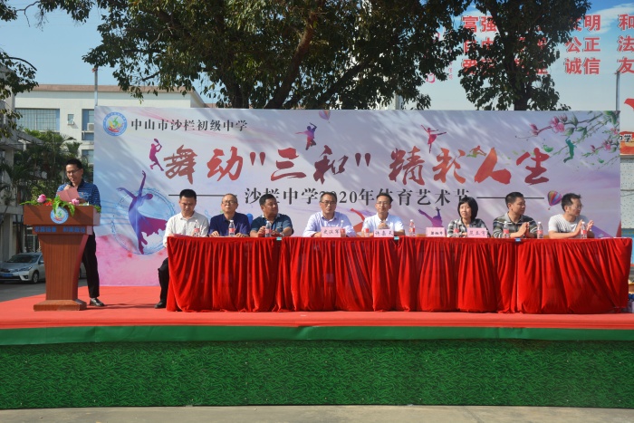 入場式結束后,舉行了隆重的升國旗儀式。全體師生肅立,升國旗,高唱國歌,少先隊員行隊禮,其余師生行注目禮。隨后,該校梁炳華校長進行了熱情洋溢的致辭,他向精心籌備本屆體育藝術節的工作人員表示誠摯的謝意,向全體裁判員、運動員致以親切的問候和良好的祝愿,并希望全體裁判員認真履職,公正裁決,希望全體運動員奮力拼搏,勇爭第一,為班爭光。在裁判員代表廖曉武老師、運動員代表陳凱恩宣誓后,三角鎮教育和體育事務中心許嘉天老師、梁炳華校長、范立宇副校長、史漢軍副校長共同鳴笛,宣布該校“舞動‘三和’,精彩人生”體育藝術節開幕。