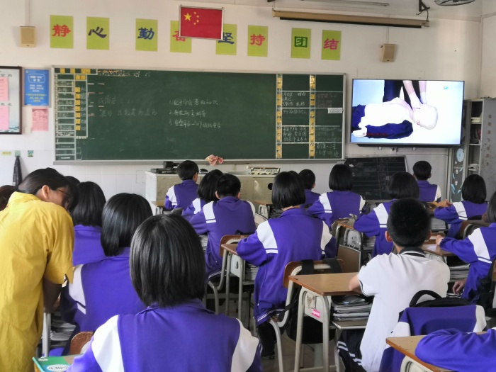 該校24個班師生通過觀看視頻,結合自主班會的形式展開宣傳活動。老師們首先向學生們介紹紅十字運動的基本知識,宣傳紅十字精神。接著,根據安全工作的實際需求,將理論知識和實際救護相結合,通過多媒體課件,現場演示、參與互動等多種形式,繪聲繪色地向同學們講授溺水自救、水中救護、岸上救護等現場救護的方法,普及了“第一目擊者”“黃金五分鐘”等應急救護新概念,并重點講述了心肺復蘇的步驟和要領。活動中,同學們認真聽講,用筆記錄,在學習互動中了解了急救知識,掌握了急救技能,提高了自助互救的能力。