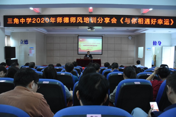 為了進一步加強師德師風建設,提高教職工的職業道德素養,強化教師文明從教、規范從教的職業意識,11月12日,三角中學在學校報告廳召開師德師風建設專題教育會。本次會議由德育處覃子湘主任主持,全校教職工參加了此次會議。會議中,覃子湘主任做題為《與你相遇好幸運》的師德專題講座。