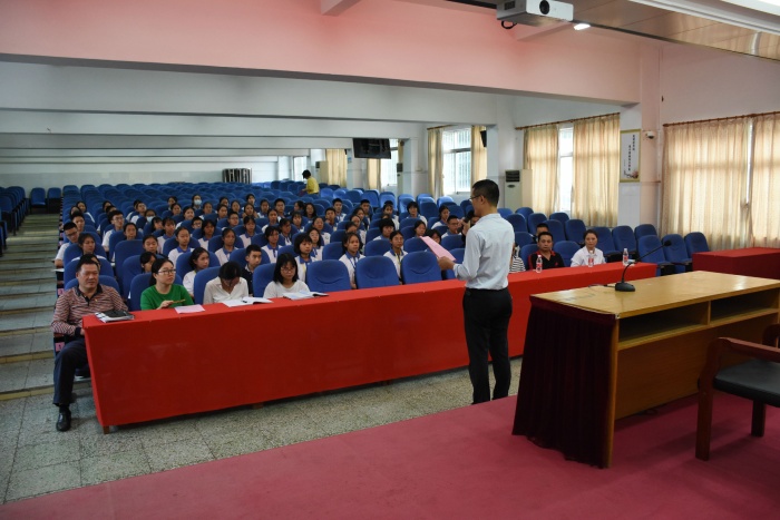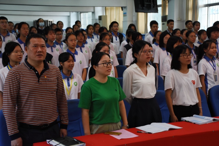 在10月11日“世界視力日”即將來臨之際, 10日下午三角中學在博愛樓報告廳舉行視力健康管理隊伍集中履職儀式。德育處覃子湘主任主持儀式并講話,溫結聯校長、全體班主任代表、家長代表、校醫和各班視力健康委員共同參加履職儀式。