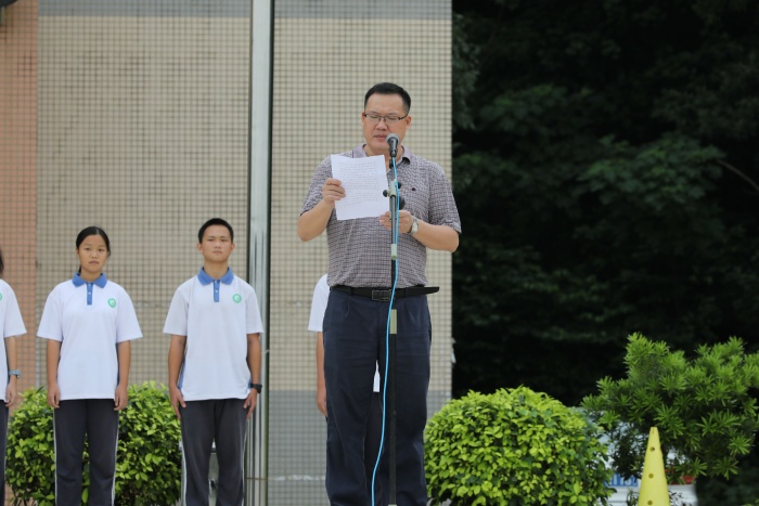 升旗儀式后,三角中學(xué)溫結(jié)聯(lián)校長為全校師生致辭!他提到了2020年我們遭遇的新冠疫情和長江特大洪水,但是在種種磨難下,我們中國特色社會(huì)主義的道路、理論和制度優(yōu)勢更加突顯。他寄語年輕一代學(xué)生要關(guān)心國家大事,關(guān)心民族命運(yùn),向獲得共和國勛章的鐘南山爺爺學(xué)習(xí),成為優(yōu)秀的社會(huì)主義建設(shè)接班人。