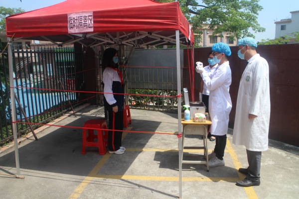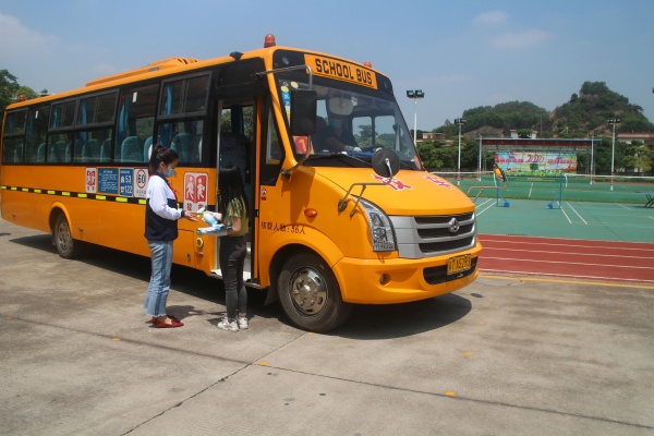本次的疫情防控應(yīng)急演練模擬了新學期開學后學生入校前的體溫測量、上課、就餐、乘坐校車等情景。當學校有學生突然出現(xiàn)發(fā)熱、干咳、乏力、鼻塞等疑似新冠肺炎癥狀,學校將馬上啟動疫情防控應(yīng)急處置預(yù)案,并及時進行上報、隔離、消毒等應(yīng)急處置工作。