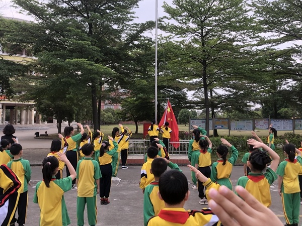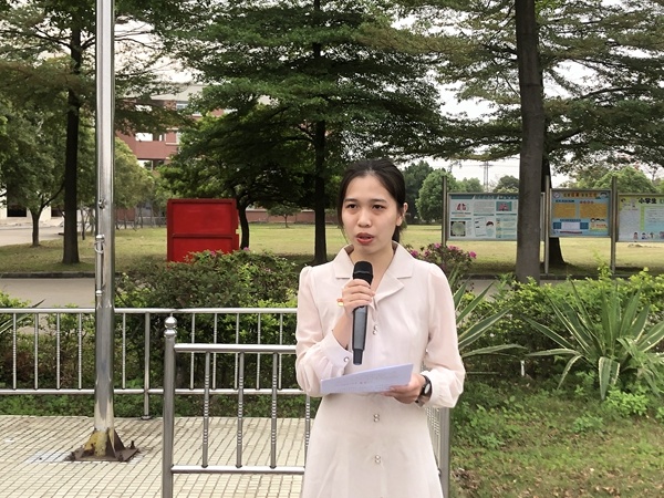 在雄壯的國歌聲中,鮮艷的五星紅旗在全體師生的注目中迎風飄揚。莊嚴的升旗儀式后,黃泳儀老師進行了主題為《牢記安全教育,守護健康成長》的國旗下講話,讓全體同學了解國家安全日來歷及背景。