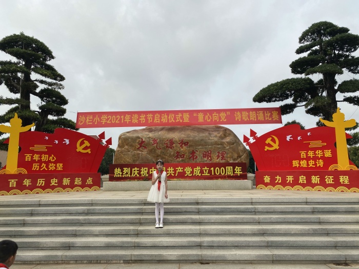 緊接著,沙欄小學舉行“童心向黨”詩歌朗誦比賽。一、二年級以弘揚愛國主義和民族精神、贊頌偉大的中國共產黨的詩歌、散文等個人朗誦。三、四年級開展以“學習雷鋒精神,爭做新時代好少年”為主題小組朗誦。五、六年級以弘揚愛國主義和民族精神、贊頌偉大的中國共產黨的詩歌、散文集體朗誦。