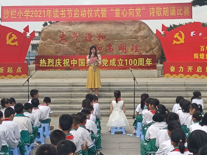 腹有詩書氣自華,最是書香能致遠。 伴著花香、書香和明媚的春光,在4月23日“世界讀書日”來臨之際,遨游書海,快樂成長,沙欄小學迎來了“2021年讀書節啟動儀式暨童心向黨詩朗誦比賽”,為慶祝中國共產黨成立100周年。