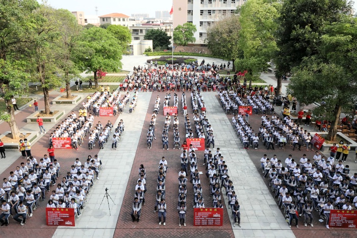 陽春三月,萬象更新,在這個充滿希望的季節里,初三中考的備戰進入了關鍵階段。為增強初三學子迎戰中考的信心,營造良好的備考氛圍,3月26日,三角中學在初三博學樓廣場隆重舉行2021屆中考百日沖刺誓師大會。學校行政領導、初三年級全體師生以及學生家長參加了大會。