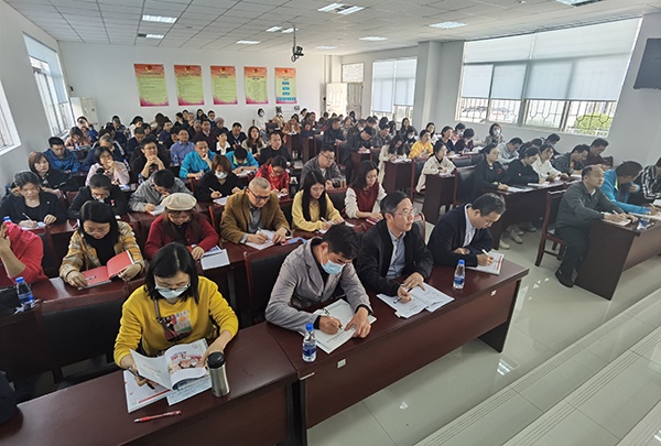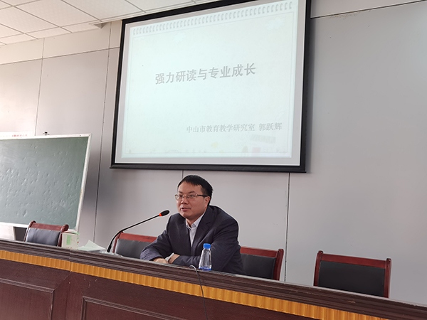 郭躍輝老師以“強力研讀與專業成長”為主題,在講座伊始,郭躍輝老師提出讀書的三重境界:經驗境界、理論境界和哲學境界。郭躍輝老師現身說法,旁征博引,深入淺出地闡明了三重境界的深刻含義,緊接著,郭躍輝老師結合自身專業閱讀的實際,分享了翻譯式閱讀、重復式閱讀、互文式閱讀、摘抄式閱讀、碎片式閱讀、任務式閱讀和聚焦式閱讀等七種閱讀方法,從理論到具體閱讀方法全面地指導全體教師進行專業閱讀,以促進全體教師的專業成長。