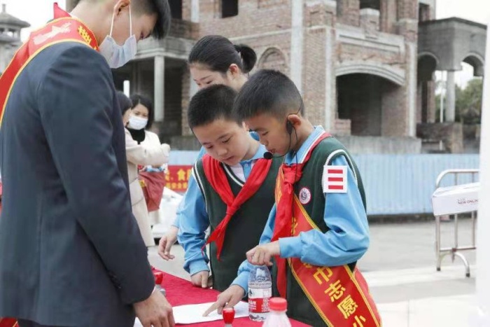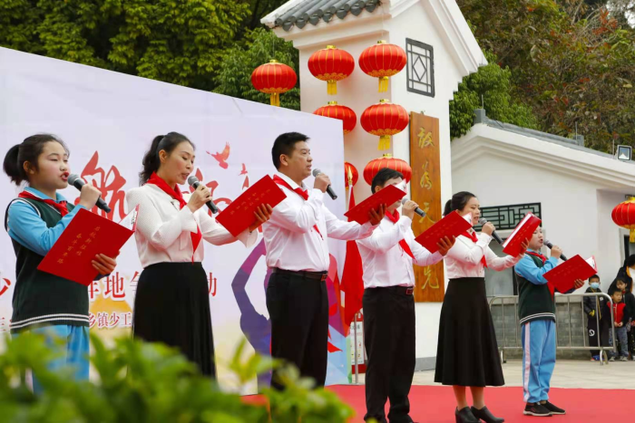 “5、4、3、2、1”,在隊(duì)員們激昂的倒數(shù)聲中,“奮斗百年路,啟航新征程”——三鄉(xiāng)鎮(zhèn)少工委校外少先隊(duì)陣地爭章活動正式啟動。參與活動的領(lǐng)導(dǎo)嘉賓分別為三鄉(xiāng)鎮(zhèn)16所中小學(xué)的紅領(lǐng)巾宣講輕騎兵授旗。雍陌小學(xué)黨員教師和少先隊(duì)員在啟動儀式上通過朗誦和歌舞抒發(fā)對黨的熱愛。三鄉(xiāng)鎮(zhèn)黨委委員鄭偉強(qiáng)結(jié)合三鄉(xiāng)紅色革命歷史、鄧小平在羅三妹山發(fā)出“不走回頭路”世紀(jì)強(qiáng)音的典故為隊(duì)員們現(xiàn)場上了一節(jié)精彩的思政課,教導(dǎo)全體隊(duì)員傳承孝道、不忘歷史,堅定社會主義理想信念!