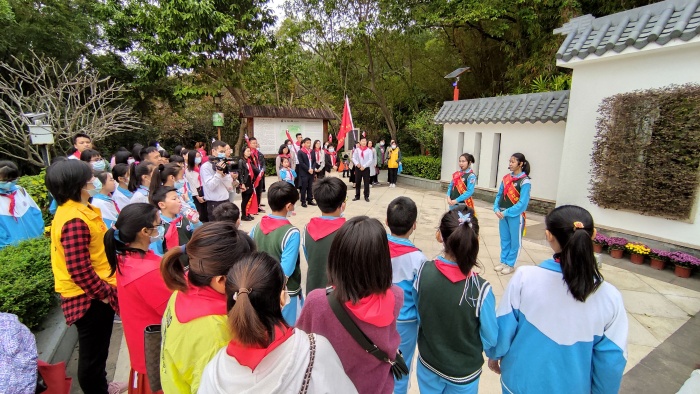 羅三妹山公園是當(dāng)年鄧小平發(fā)出“不走回頭路”世紀(jì)強(qiáng)音的地方,是廣東省黨史教育基地,因孝女羅三妹而得名,又因鄧小平的盛世諍言蜚聲中外,對少先隊(duì)員的政治啟蒙和價值觀塑造具有實(shí)踐教育作用。本次活動包括三大板塊,分別是:校外少先隊(duì)陣地爭章啟動儀式、現(xiàn)場開展思政課教育以及“夢想章”的通過印章。