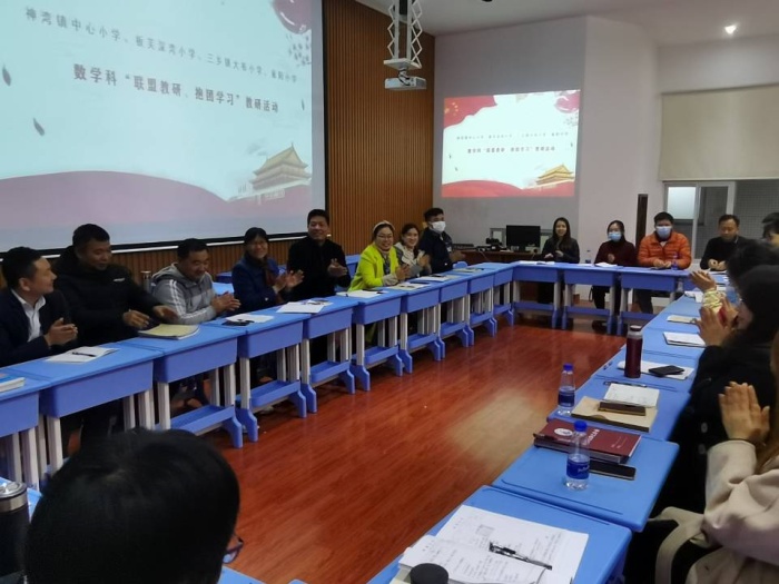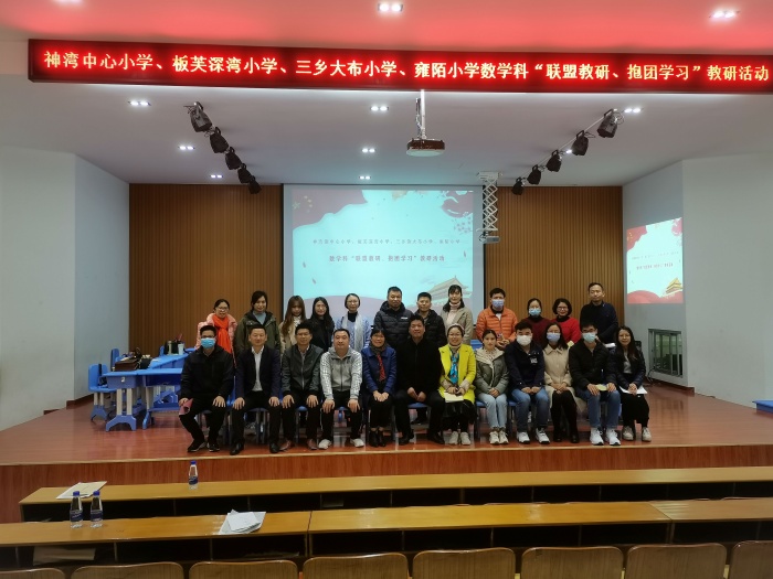 課后,三位上課老師跟大家分享了他們的教學(xué)設(shè)計(jì)和教學(xué)反思,每所學(xué)校派出兩位教師代表進(jìn)行評(píng)課。大家都各抒己見,肯定了上課老師的優(yōu)點(diǎn)并且給出寶貴的建議。最后,大布小學(xué)的曾鵬主任、雍陌小學(xué)的王建林副校長和神灣中心小學(xué)梁副校長對(duì)這次活動(dòng)進(jìn)行了總結(jié)。提出年輕人要多磨煉、多學(xué)習(xí)、多請教,為數(shù)學(xué)學(xué)科注入一股新鮮有活力血液的期望。最后,四所學(xué)校老師合影留念,建立下兄弟學(xué)校間的友誼。