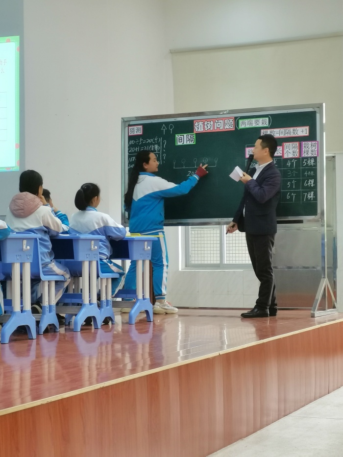 緊接著,神灣中心小學(xué)蔡林老師執(zhí)教五年級(jí)《植樹問題》,課堂上帶著孩子們積極思考,得出了多種方法,列表法、畫圖法,向我們充分展示了生本課堂。