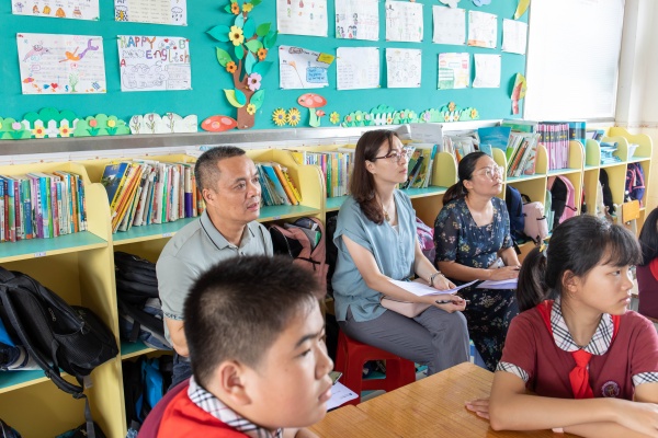 聽取匯報后,調研組兵分三路,前往教學樓推門聽課,走入課堂,切實感受心理健康教育在課堂的呈現。評估組對三節心理輔導課的設計理念及輔導策略給予了充分肯定,特別對中年級張萌霞老師執教的《“壞”情緒變變變》這節課頗為贊賞,素材引入適切,環節銜接流暢,突顯同理心和撫慰效果。之后,調研組還實地考察心理輔導室——彩虹屋,進行心理健康調查問卷以及查閱相關資料和文檔。