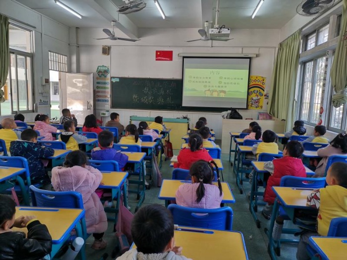上午9時40分,各班將班務整理好后,散學禮準時開始。全校21個班,分別在各自的教室里觀看校園直播。首先,由教導處李惠霞主任作該學期的教學工作總結,李主任表揚了認真努力的同學們和辛勤付出的老師們,宣布了該學期來學生、老師以及學校獲得的獎項,鼓勵大家繼續發揚光大,并建議學生在寒假多讀課外書,練就一手好字,并積極參與實踐,全面提升自己的能力。接著由白石派出所葉青警官為全校師生上法治安全課,葉警官提醒大家寒假在家要注意防火、防電、防煤氣泄露等居家安全及外出安全,尤其是燃放煙花爆竹時的安全事項一定要遵守。接下來德育處謝萬明主任重點講了疫情防控期間的寒假安全教育、寒假心理錦囊、抵制校園欺凌、預防性侵犯、法治專題教育等。最后由各班主任布置寒假相關事宜,以保證每個孩子在寒假過得安全、健康、快樂而又充實。