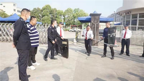 下午3時50分,“突發暴力入侵校園”安全演練開始。廣播警報聲響起,總務處黃立冬主任隨即通知全體師生進入緊急戒備狀態,全校學生迅速返回教室, 21位班主任立刻進入班級組織班上學生關好門窗、拉上窗簾、堵住門窗,安靜地躲藏課桌下。辦公室的其他教師立即召喚在教學區玩耍的同學到辦公室靜聲躲藏。學校維穩隊員馬上出動支援保安,上前協助阻止、制伏“歹徒”。與此同時,接到“警情”的白石派出所郭盛本副所長等6名民警趕到現場,警報解除。演練結束。黃立冬主任總結了此次演練的成功與有待提升之處,之后由班主任根據班級演練情況進行總結。此后,在派出所郭副所長的指揮下,吳寶強警員現場向全體保安和男老師教授、示范怎樣有效使用防暴武器,怎樣安全快速地阻止、擒拿入侵人員,確保師生安全、校園安全。各維穩隊員學得認真,并親身實踐。