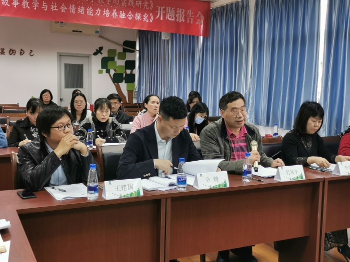 接著,由丘秀文老師對青年課題《小學英語繪本故事教學與社會情緒力培養融合探究》從選題背景、國內外研究現狀、研究價值和意義、研究目標和內容、研究思路和方法、研究進度6個方面作介紹。鎮小學英語教研組組長趙淑珍老師也是高度肯定了這一選題。認為選題符合教研方向,真實具有時代性,跨學科的新穎。接著,市教研員辛健老師就開題報告作出細致的點評,尤其對研究內容進行了深入的思考。