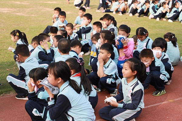 濠涌小學(xué)高度重視學(xué)生的安全教育,日常利用班隊(duì)會(huì)課、早午讀等時(shí)間為孩子們講解安全逃生的知識(shí)要點(diǎn),并經(jīng)常讓老師們復(fù)習(xí)《校園突發(fā)安全事件應(yīng)急預(yù)案》,明確安全責(zé)任。演練的時(shí)候,警鈴一響,全體人員嚴(yán)格按照應(yīng)急預(yù)案,各位老師迅速到達(dá)指定崗位,引導(dǎo)學(xué)生快速疏散。學(xué)生彎著腰、貓著步,用手帕、毛巾或手捂住口鼻,沿著學(xué)校指定的疏散路線快速前進(jìn),有序撤離到學(xué)校操場(chǎng)的安全地帶,隨即各班主任老師清點(diǎn)人數(shù),耗時(shí)不到一分鐘,全校師生全部安全疏散完畢,整個(gè)逃生過(guò)程迅速而有序。演練結(jié)束后,演練總指揮李耀康老師對(duì)演練情況作出了總結(jié),再次強(qiáng)調(diào)在火災(zāi)逃生時(shí)應(yīng)注意的事項(xiàng),確保做到快速安全撤離。