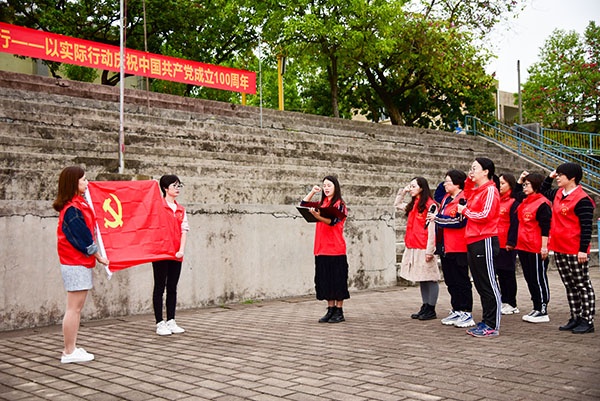 接著,全體黨員教師齊聚黨旗下,重溫了入黨誓詞。“我志愿加入中國共產黨……隨時準備為黨和人民犧牲一切,永不叛黨。”鏗鏘恢宏的誓詞,強烈震撼著在場的每一個人,一字一句,神圣而豪邁,錚錚誓言,體現了黨員同志們對中國共產黨的無限忠誠,堅定了入黨使命,為初心而奮斗!