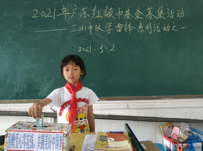 活動的第一項(xiàng)是播放視頻,讓隊(duì)員們知道自己的愛心捐款,是為了幫助廣東粵西北農(nóng)村貧困的孩子,尤其是為更多留守兒童改善學(xué)習(xí)環(huán)境,讓他們在隊(duì)員們的關(guān)愛下得以健康成長。活動第二項(xiàng)是愛心捐款,隊(duì)員們紛紛拿出自己積攢的壓歲錢,有的5元,有的10元,有的20元,大家十分踴躍,都想盡自己的一份力量,奉獻(xiàn)愛心。