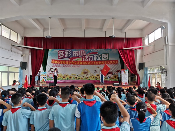6月10日下午,樂(lè)群小學(xué)一年級(jí)預(yù)備隊(duì)員、六年級(jí)優(yōu)秀隊(duì)員代表與輔導(dǎo)員老師齊聚學(xué)校禮堂,舉行新生入隊(duì)儀式。儀式在主持人熱情洋溢的講話以及全體隊(duì)員齊唱《中國(guó)少年先鋒隊(duì)隊(duì)歌》的歌聲中拉開(kāi)帷幕。