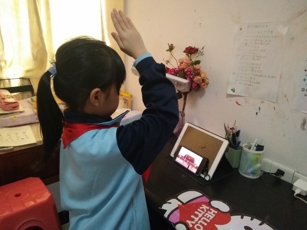 本次主題班會(huì)課分為兩個(gè)環(huán)節(jié)。第一個(gè)環(huán)節(jié),是在線舉行升國(guó)旗儀式。在這特殊的日子里,樂小學(xué)子們懷著激動(dòng)的心情,穿上整潔干凈的校服,戴上鮮艷的紅領(lǐng)巾,認(rèn)真觀看天安門廣場(chǎng)的升旗儀式,并敬上最標(biāo)準(zhǔn)的隊(duì)禮,表達(dá)自己濃濃的愛國(guó)情。第二個(gè)環(huán)節(jié),各班班主任老師組織學(xué)生觀看網(wǎng)絡(luò)課《你了解清明嗎?》,讓同學(xué)們了解清明節(jié)的相關(guān)知識(shí)。同學(xué)們通過觀看清明節(jié)教育視頻,了解了清明節(jié)的起源、時(shí)代意義、歷史發(fā)展和節(jié)日習(xí)俗由來等等。隨后,老師還介紹了革命先烈們的英雄事跡,激發(fā)大家要向革命先烈們學(xué)習(xí),在疫情期間提倡同學(xué)們線上向革命先烈們鞠躬敬禮。