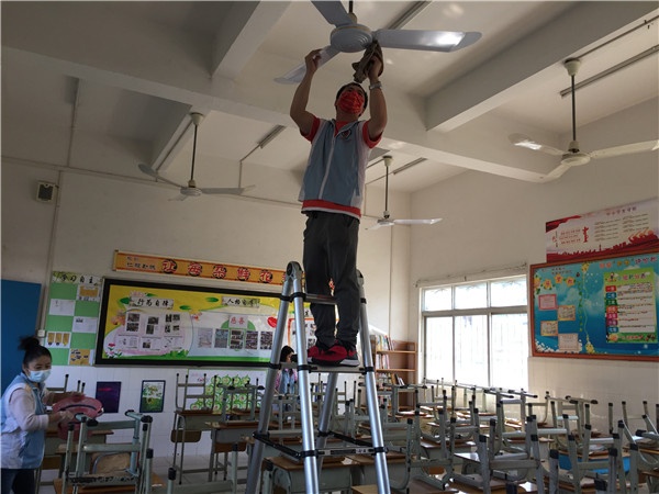 沉寂了一個(gè)月的龍頭環(huán)學(xué)校校園里,突然熱鬧起來了,每一間辦公室和教室都有忙碌的身影,老師們、家長(zhǎng)們、學(xué)生們紛紛開始了細(xì)心的清潔工作,對(duì)樓道內(nèi)、樓梯間、學(xué)生教室、教師辦公室等場(chǎng)所進(jìn)行全面清潔消毒,并保持教室開窗通風(fēng),確保清潔不留死角、不漏盲區(qū)。做好防疫消毒工作,為迎接開學(xué)的到來做好準(zhǔn)備。