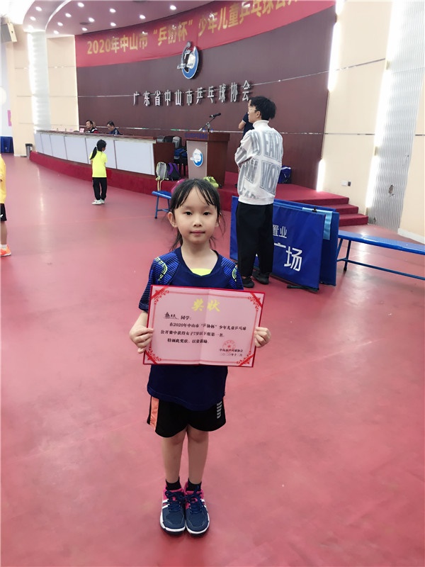 12月26-27日,2020年中山市“乒協杯”少年兒童乒乓球公開賽在中山市乒乓球館隆重舉行,被譽為龍頭環學校“女將”乒乓球選手的楊貝貝同學,憑借出色、沉著、穩定的發揮,經過激烈的角逐,喜獲“乒協杯”少年兒童組乒乓球公開賽第一名的優異成績!
