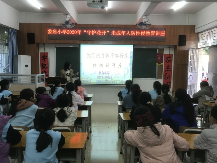 學生如何避免遭受到性侵害?遭到性侵害后該怎么做?為進一步提高學生的自我防范意識,預防青少年兒童受到性侵害。12月30日,象角小學組織各班開展了“守護花開,防性侵安全教育”主題教育活動。