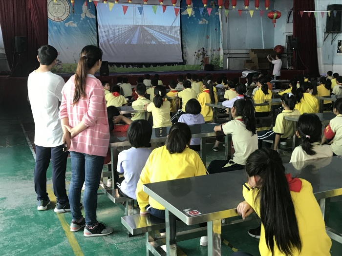 9:00,學校組織五、六年級約300名師生到大禮堂就座。9:25分,電影正式開始。