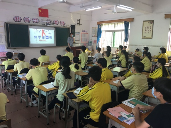 今天的第一節是班會課,在學校德育處的統一安排下,班會課有兩個主題,先是觀看“復學第一課”,科學規范的學習校園防疫知識。然后是進行心理健康教育,疏導同學們長期居家的心理不適,不必過于擔心學習的壓力,做好網課和線下教學的恰當銜接。