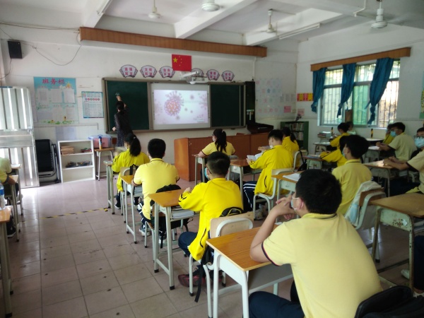 然后班主任強調(diào)學校相關(guān)防疫事宜。在校內(nèi)不聚集,不打鬧,不串教室,不串座位,課間按各班級劃分的區(qū)域活動,課間勤洗手,午餐分批次錯峰進餐。將防疫教育和措施做到細致周全。