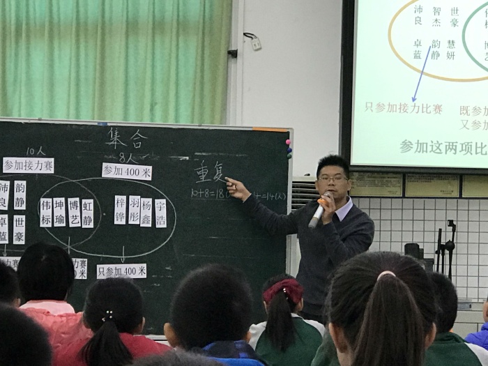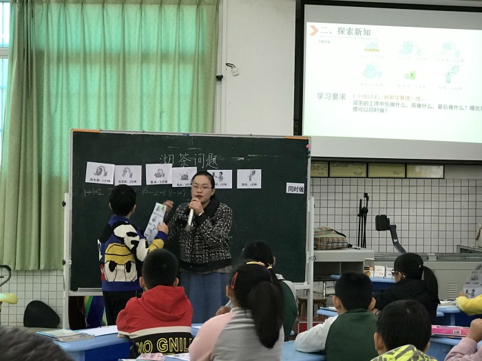 賽課于2020年12月4日進(jìn)行,首先是神灣中心小學(xué)周有騰老師帶來《數(shù)學(xué)廣角-集合》展示課。周有騰老師通過展示學(xué)生參加運(yùn)動(dòng)會(huì)接力賽和400米跑步賽人數(shù)與他們之和不同的情況,讓學(xué)生關(guān)注不同的答案,抓住沖突,激發(fā)學(xué)生探究的欲望。并讓參賽學(xué)生站出來,讓學(xué)生初步感受集合與重疊問題的緊密聯(lián)系,并初步形成韋恩圖。第二節(jié)是由育才小學(xué)劉健靈老師帶來《沏茶問題》,劉老師通過小組合作交流等形式,讓學(xué)生弄清事情的先后順序,并找出最優(yōu)方法。第三節(jié)是由神舟學(xué)校唐貴娣老師帶來《數(shù)與形》一課,通過與學(xué)生比賽的方式,激發(fā)學(xué)生計(jì)算的興趣,讓學(xué)生積極參與課堂。最后一節(jié)課是由崇正學(xué)校彭子群老師帶來《植樹問題》,彭老師巧妙地將學(xué)生的10個(gè)手指“轉(zhuǎn)化成”學(xué)具,讓學(xué)生理解兩邊栽樹的情況,還有棵數(shù)與間隔數(shù)的關(guān)系,突破了難點(diǎn)。