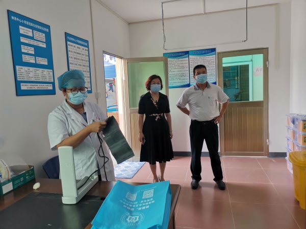 特殊的開學典禮后,神灣鎮人大主席李明生在譚瑞香校長的陪同下,參觀走訪了學校校醫室,查看防護物資的準備情況,詢問檢查了學校應急通道的完成情況,肯定了全校教職工為學生順利返校付出的努力。另一邊,神灣鎮衛計局陳愛文同志親自抵達學生校車乘坐點的北門,在邱繼發副校長等人的陪同下,查看校車消毒清潔記錄表、詢問學生上下車體溫檢查的落實情況等,強調防疫防控期間也要常抓校車安全。為充分保障飯堂管理與飲食安全,在李健主任的帶引陪同下,神灣鎮食監所韓華彰所長一一查看了飯堂工作人員的健康證明材料,檢查了倉庫內糧米、雞蛋等生活物資的儲存情況,強調學校后勤部一定要確保食材的新鮮與安全,做到后勤力量有保障、學生飲食重安全。