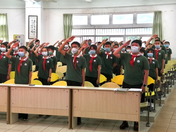 溫情的迎接禮后,各班班主任、副班主任早已面戴口罩、手拿測溫槍,在課室門口等待已久。必要的入班檢查后,學生們端正坐在熟悉的課室里,迎來了這場與以往有所不同的開學典禮。耳邊響起熟悉的國歌,隊員們整齊的敬禮,同學們在視頻里接受了譚瑞香校長的開學祝福,在班主任的組織下觀看了復學第一課視頻、學習了一日生活指南等,神采奕奕又充滿專注的雙眼里,寫滿了對課堂、對學習的渴望。