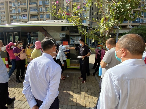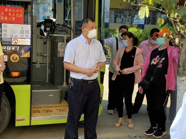 然后,由公交公司的蘇隊長傳達市教體局有關校車的疫情防控要求。校車所有工作人員必須持有粵康碼才能上崗,每輛校車必須配備測溫槍和消毒用品,每天對每輛校車進行全面消毒,對每輛校車進行安全檢查,保證行車安全。學生上車前必須測溫,詳細記錄每位學生的健康狀況,如發現體溫超過37.2度的學生,嚴禁該生上車,并及時通知家長。