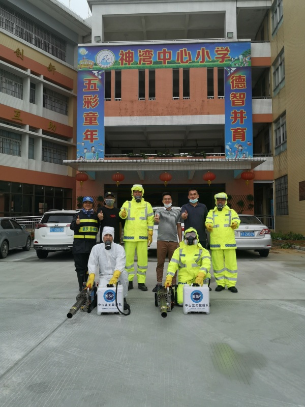 有這樣一支隊(duì)伍,穿著厚厚的防護(hù)服,或黃色或白色,背負(fù)著凈重超50斤的消毒槍和消毒水罐,穿梭在城市的大街小巷里,4月22日,這群美麗而又忙碌的身影出現(xiàn)在了神灣中心小學(xué)的校園里,他們就是中山市藍(lán)天救援隊(duì)——戰(zhàn)“疫”復(fù)學(xué)的護(hù)航者。