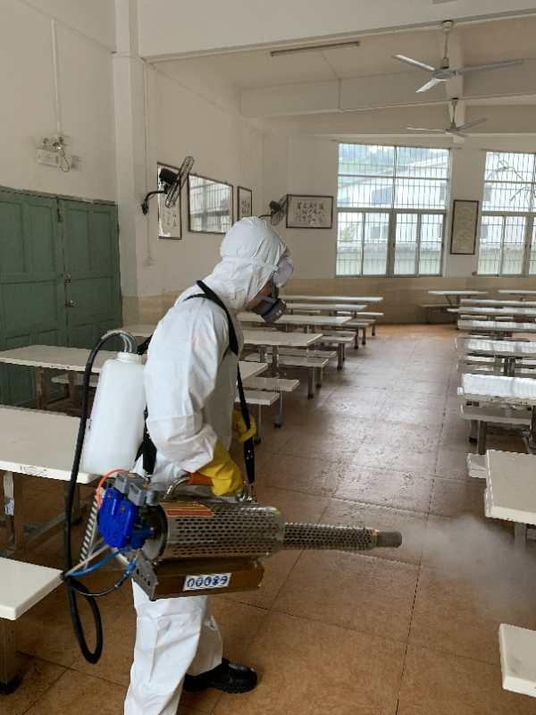 兩個(gè)多小時(shí)的奮戰(zhàn)后,校園消殺工作順利完成,看著干凈的走道、整潔的教室、衛(wèi)生的飯?zhí)茫駷持行男W(xué)的行政班子對藍(lán)天救援隊(duì)隊(duì)員表達(dá)了由衷的感謝和敬佩,感謝他們的付出,敬佩他們的無畏。為了藍(lán)天下的安寧,救援隊(duì)一直勇往直前,用行動彰顯了最美逆行者的責(zé)任,用堅(jiān)持展示了助力戰(zhàn)“疫”的決心。此次防疫消毒活動的開展,不僅凈化了校園環(huán)境,為返校師生的安全筑牢了健康防線,也為合力克難、戰(zhàn)勝疫情筑牢了信念大堤。